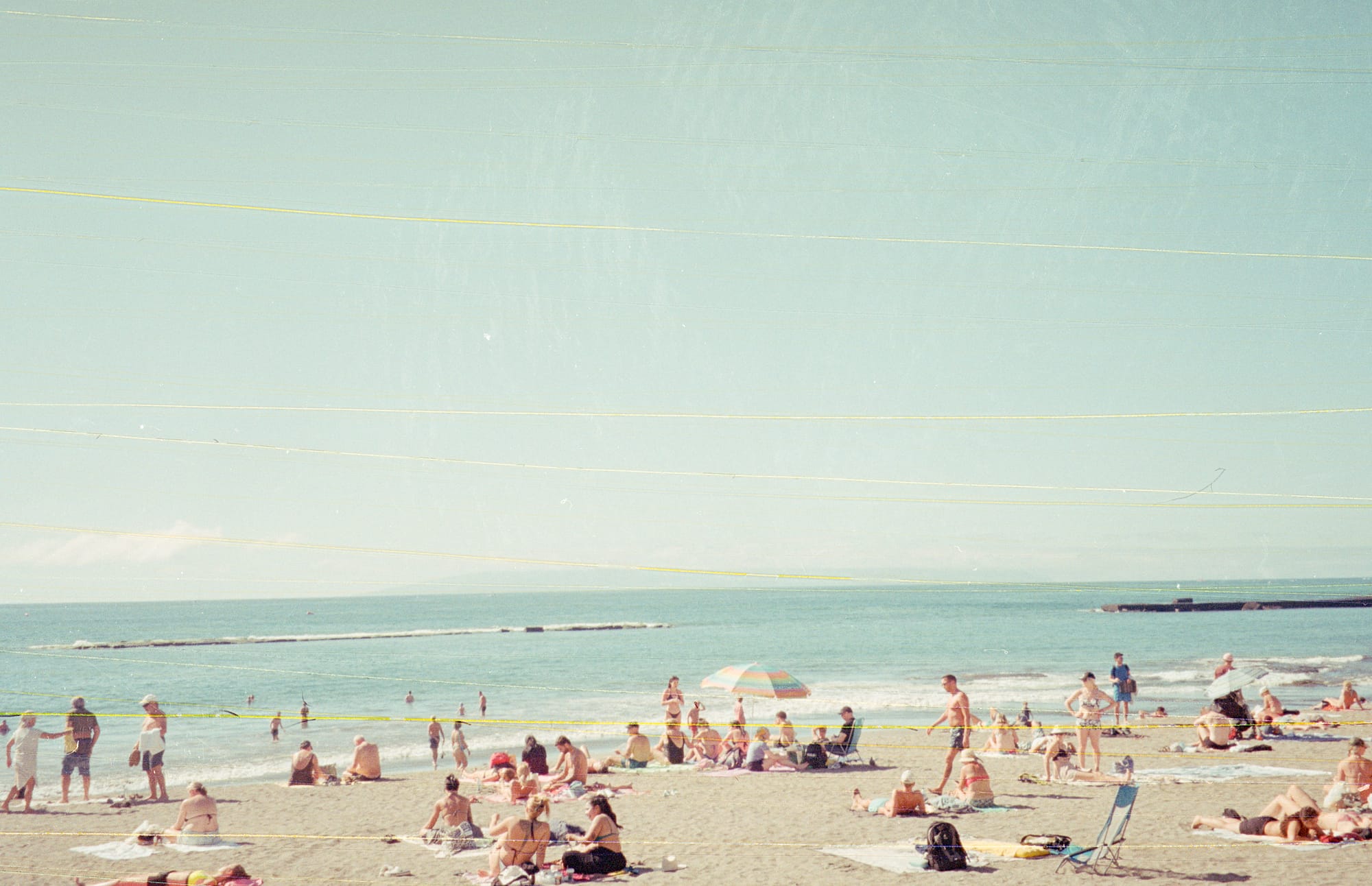 Even at 8 am, the sun warmed my face as I ambled from the hotel. I noticed that the hustle and bustle of tourism from the previous afternoon had gone, and instead I was greeted by locals on their morning jogs, elderly, tanned bodies meditating on the sand along the route. As I walked to the water's edge to start taking photos, I became aware that a couple of the swimmers coming out of the water were naked, so I quickly let the camera hang loose and moseyed along.